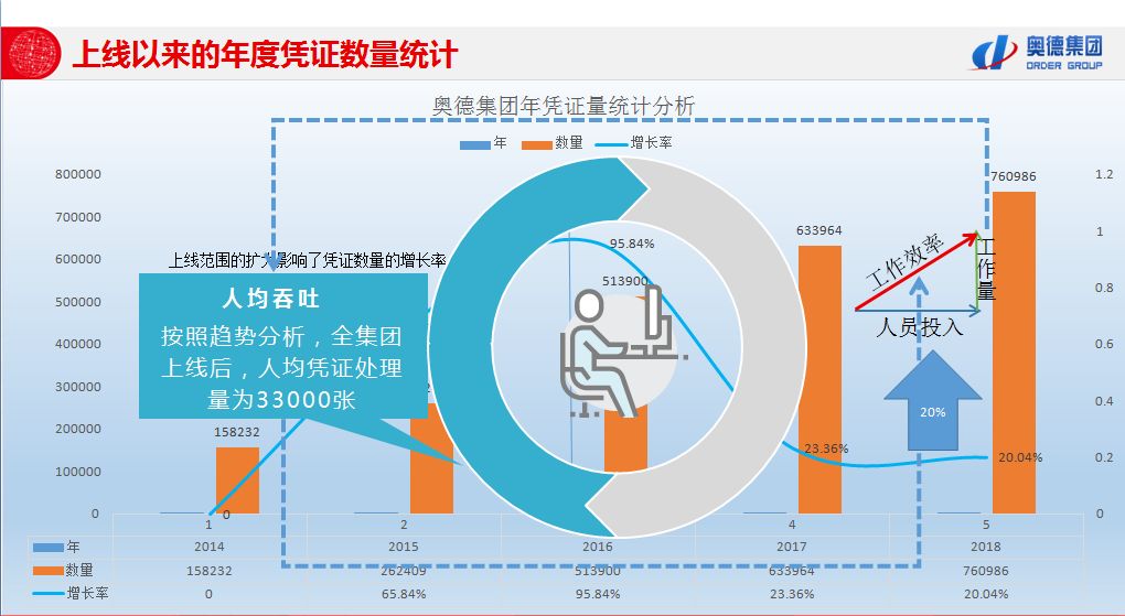 据介绍,集团财务共享中心投运后,在配备28名共享人员的情况下,上线一年审核影像62.5万多张,处理共享单据26.8万多笔,处理共享资金付款超7.9万笔。报销周期从上线期初的7.9天缩短至目前的3.4天,缩短近60%。