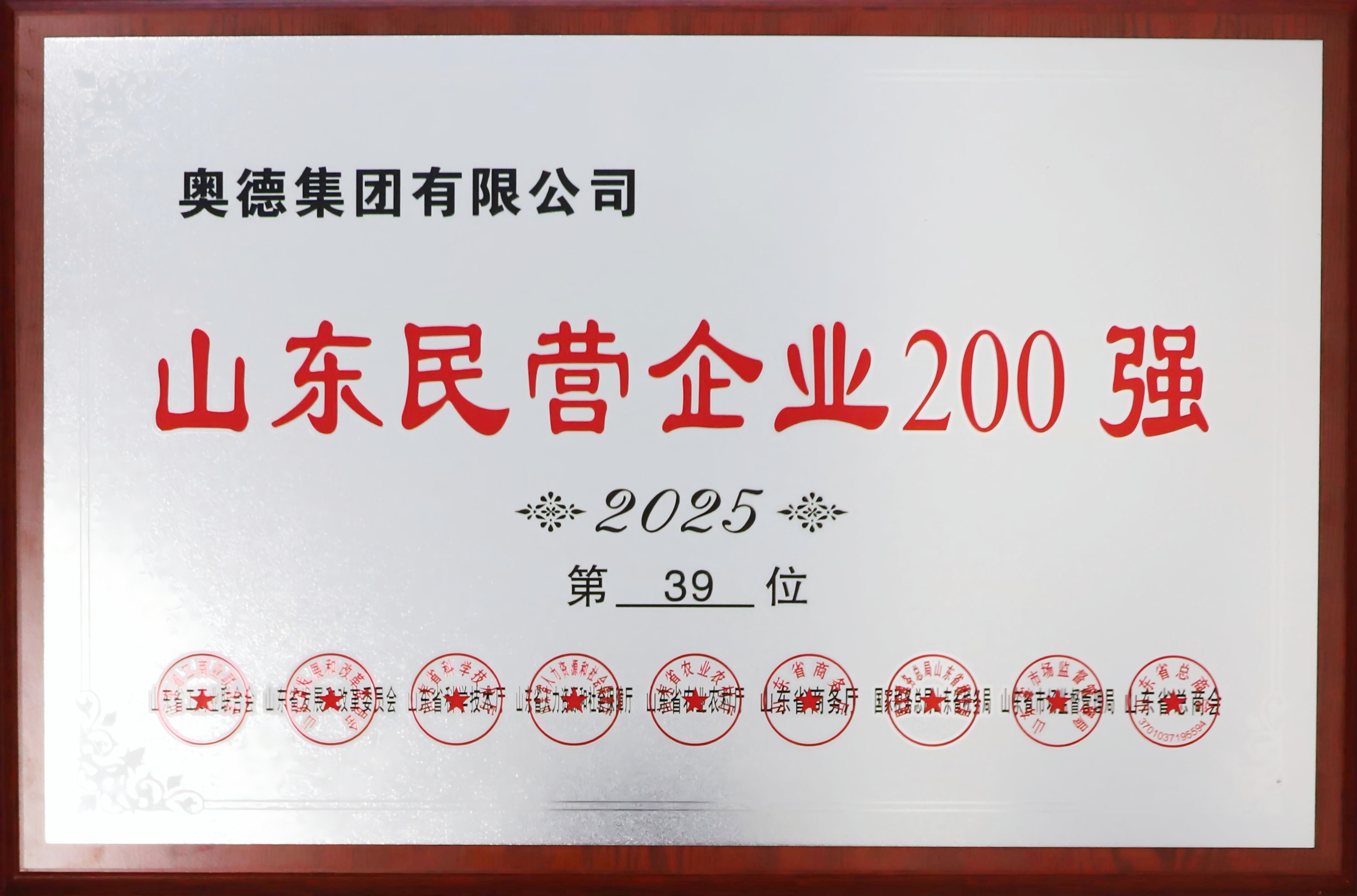 奥德集团再次入选“2025山东民营企业200强”,排名第39位;入围2025年临沂市企业“凤凰金榜”。
