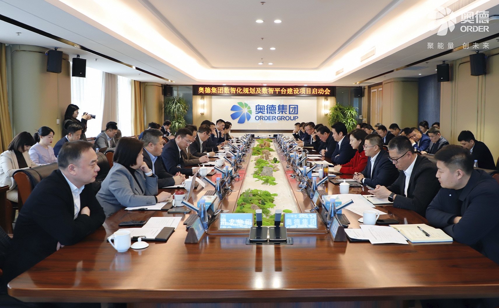 会议传达了《关于成立奥德集团(2026-2030)数智化规划及数智平台建设领导小组的通知》,毕马威进行了《数智奥德2030》总体思路分享,用友集团进行了《奥德集团AI+数智化转型升级方案》建设思路分享。